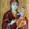 This exquisite Virgin Mary and Child glass mosaic icon is inspired by traditional Byzantine and Eastern Orthodox Christian iconography. The artwork portrays the Virgin Mary holding the Christ Child, expressing divine love, protection, and spiritual grace.