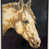 White Horse Stone Mosaic Art – Custom Animal Mosaic Tile on Black Background for Wall Decoration